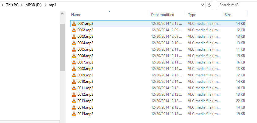 Bottom view after buttons have been added. Connect an 8 ohm speaker to the socket labeled SPEAKER. If you want to have more volume than what is supplied from a single speaker you can connect a set of amplified speakers (from an old PC) to the terminals labeled R-audio-L Attach the common wire to the center terminal and the left and right channels to L & R. Insert the microSD card containing the sound file(s) - note that the mp3 files are in a directory called mp3 If only one sound is being used all you need is to name the file 0001.mp3 and put it in the mp3 directory