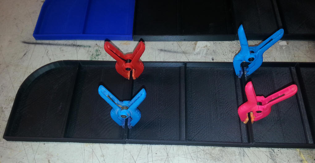 When the printing was complete I glued each section together. I used ABS filament which is the same plastic used in Legos. Weld-on #16 works very well with this plastic.
