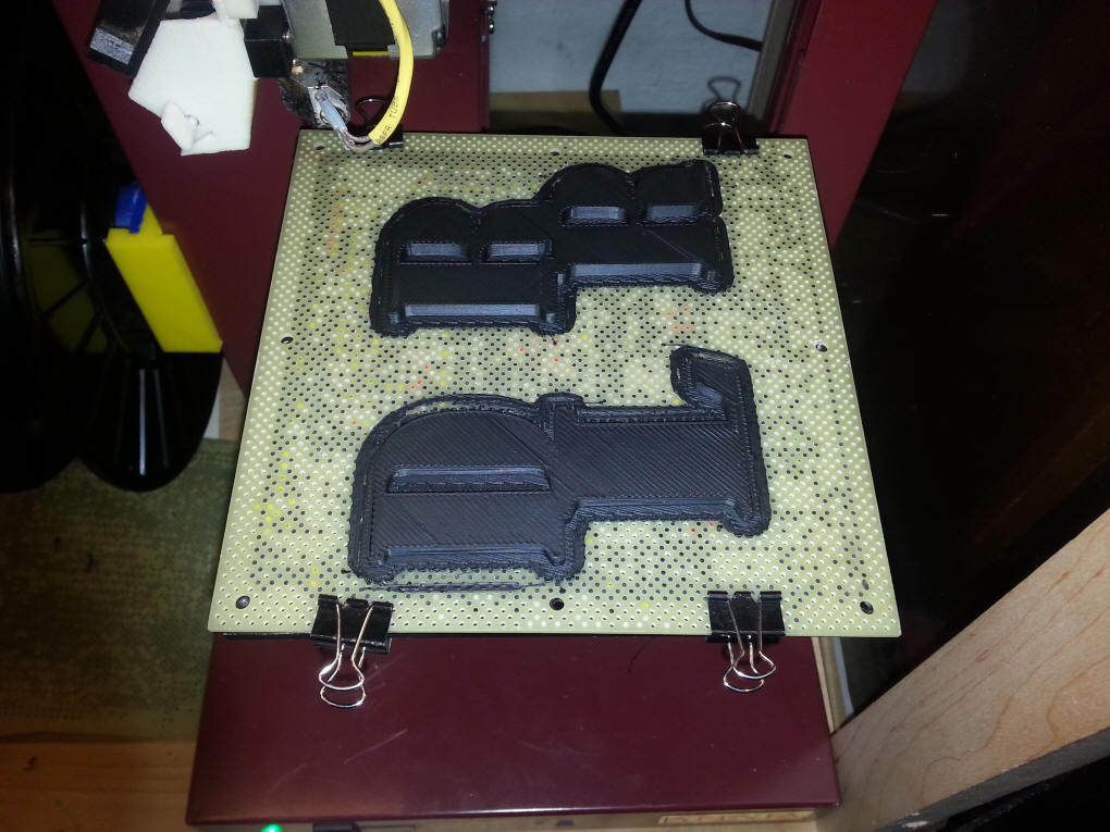 Each section took about 2 hours to print on my FlashForge Creator, the larger and faster of my printers. The Afinia took more than 3 hours and the size of each section, about 5" x 4", was right at the threshold of its print size and I had to be very careful to orient the piece to keep from having failures.