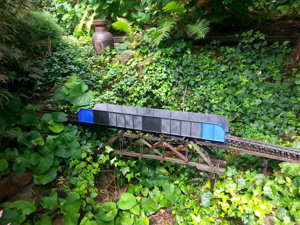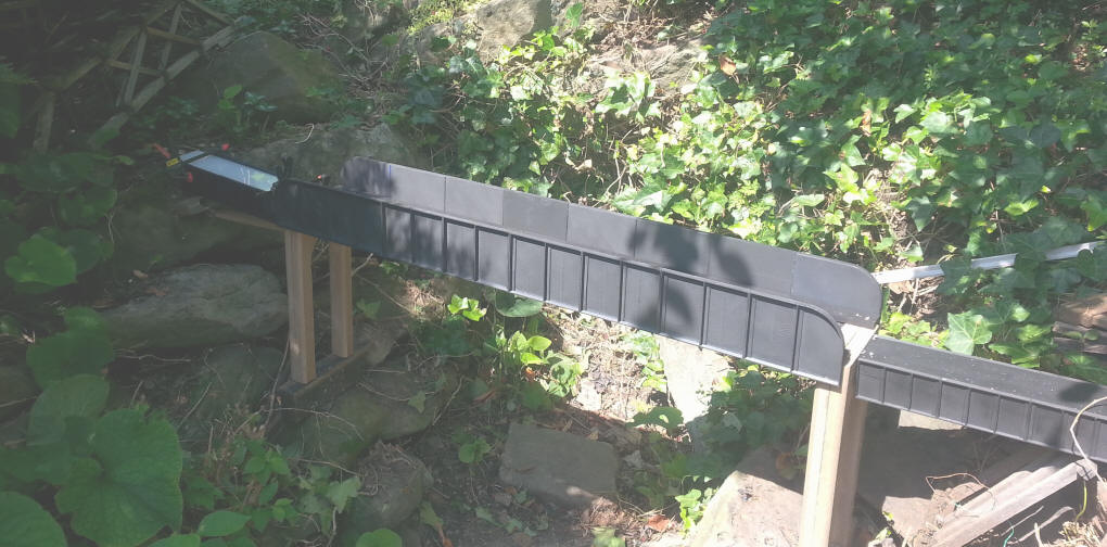 The main deck of the bridge is made of a piece of 1/4" Plexiglas. That, along with some Plexiglas side supports, add to the rigidity of the bridge. I can also add aluminum angle under the deck if it sags.