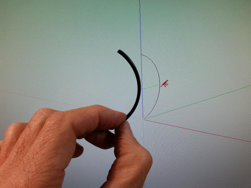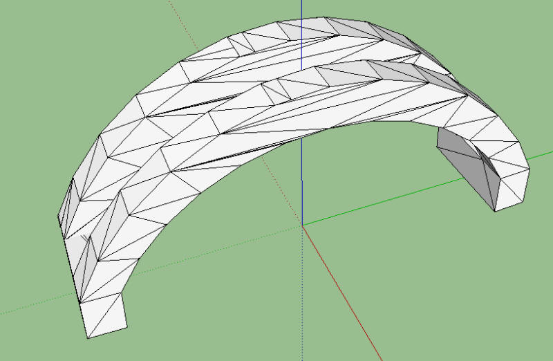 You should notice a series of flat areas in the curved bumper as in the photo above. This is due to the way that STL files, the standard for 3D printers, store files. The image below shows the STL file for the bumper in Sketchup - its curve is shown as a group of connected rectangles & triangles. This can be improved either with sandpaper or from making some adjustments in the software.
