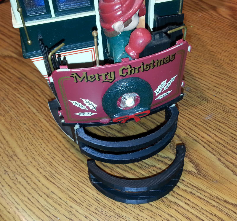 To get the curve just right I held the bumper section that had broken off of the trolley against the screen as I stretched an arc to match.