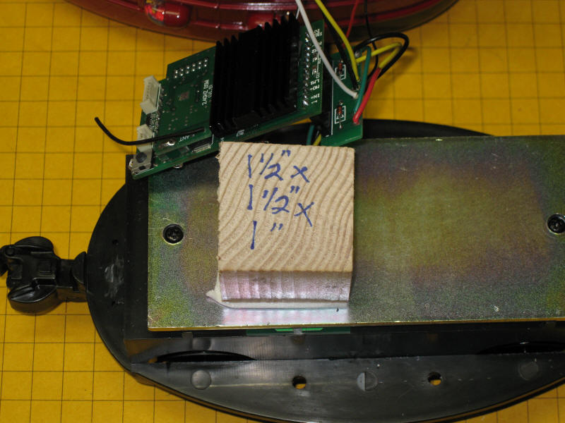 A 1.5" x 1.5" x 1" wood block is used to raise the receiver above the metal weight. It has been attached with double sided foam tape.