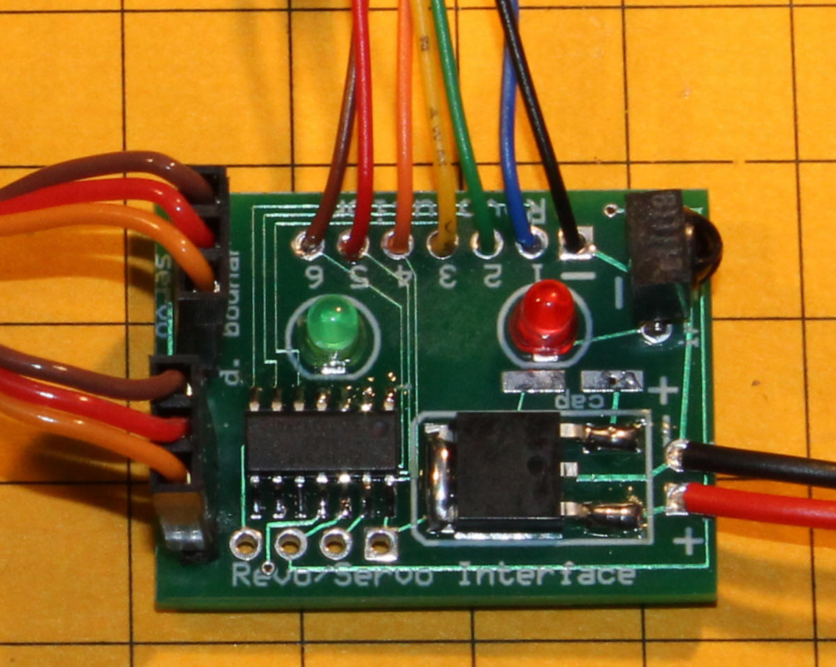 To connect the Servo Interface to the REVOLUTION receiver you need to solder