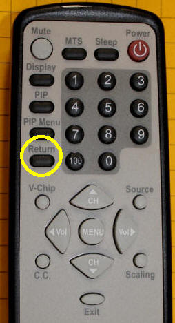 Press the "Return" button on the TV remote and wait for the green LED to stop flashing. Press the "V-Chip" button - the LED will flash rapidly. Press the "Exit" button to fully reset - press the "Power" button to abort reset.