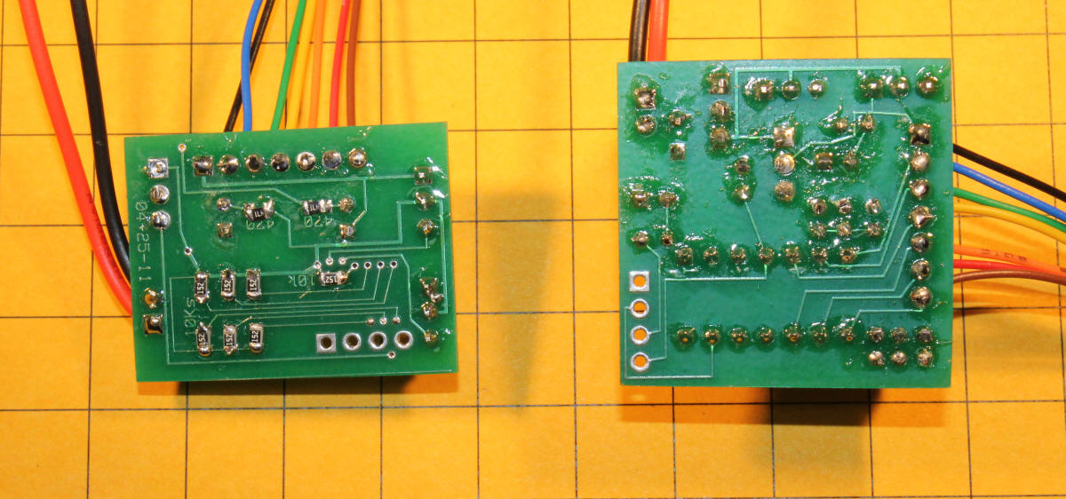 Note that the surface mount version has a number of components soldered to the back of the board.