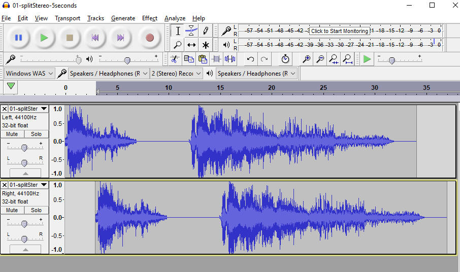 The result should look like this with a separate box to the left for the Left and Right channels.