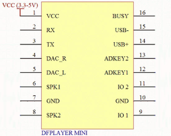 Schematic Changes There are two audio output methods that are employed by the DFPlayer. The DFPlayer's pins are shown here.