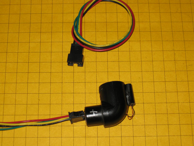 The IR sensor units can be connected directly to the four wire cable that is soldered to the circuit board or an extension can be made using the other end of the cable that is shown here. Just make sure that the red wire goes to the pin on the sensor that is marked "+". The other wires must be connected in the same order that they are in on the cable.