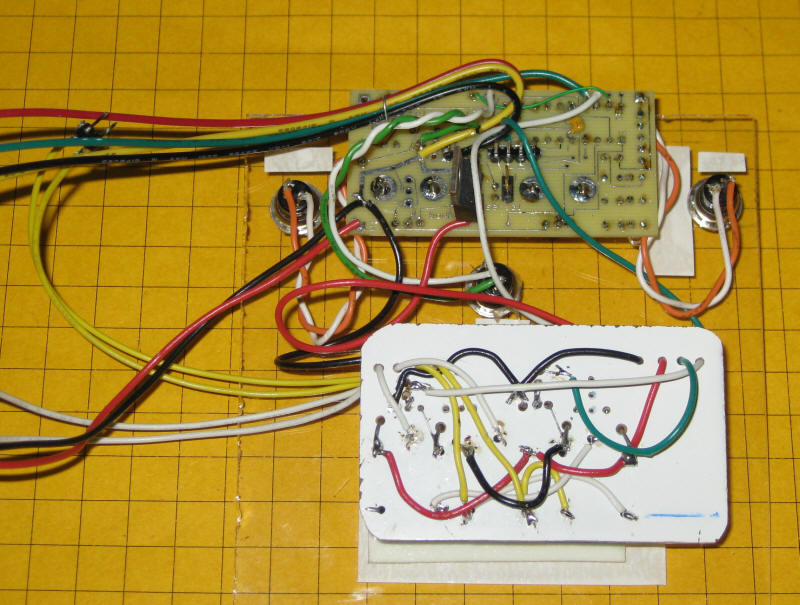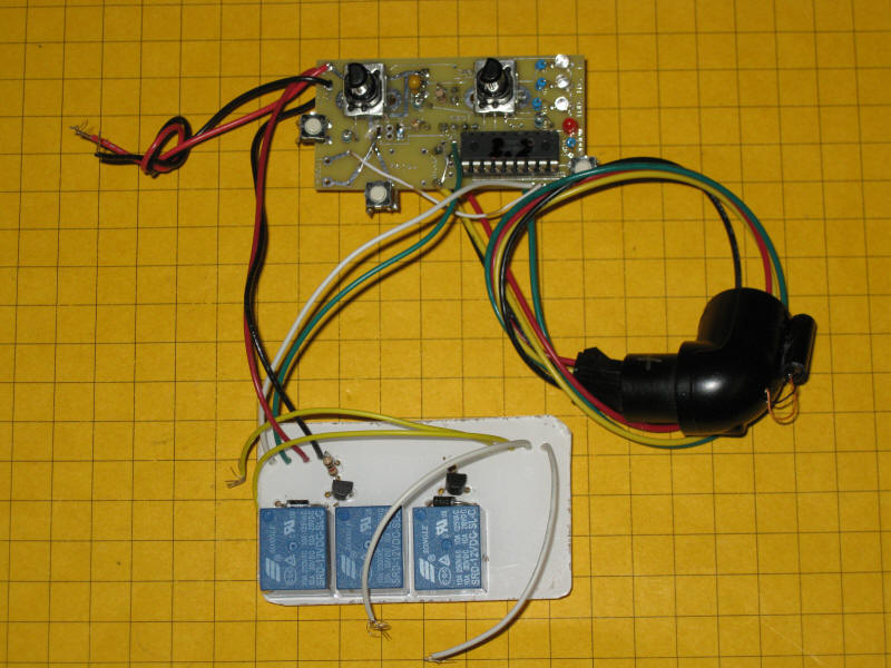 Here is a bottom view of the two boards. The relays are on the white board at the bottom.