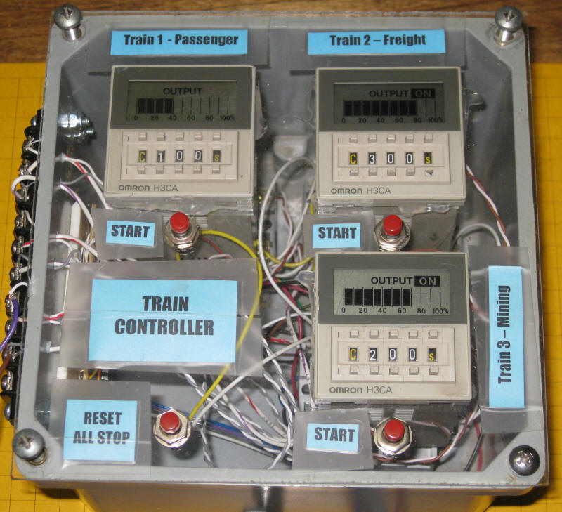 Another train layout that the PGRS built for Phipps Conservatory and Botanical Gardens had three separate loops that were controlled by three Omron timers. Here is the controller that operated that layout.