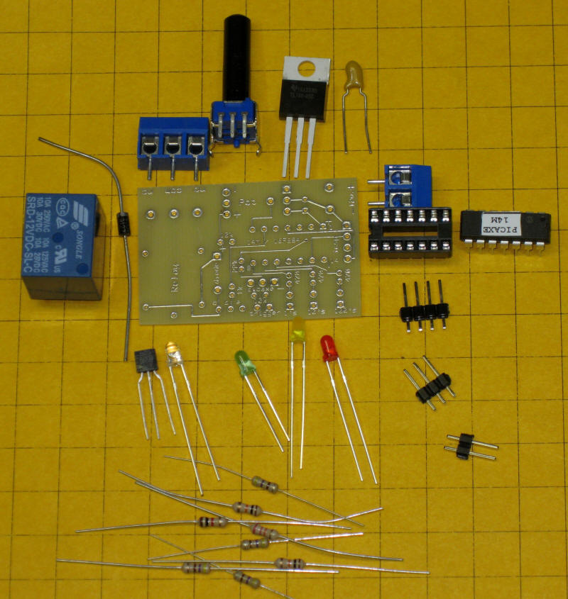 The circuit is also able to use a PIC microcontroller rather than the PICAXE. You may recall that the PIC is the chip upon which the PICAXE is based. The main advantage in using the PIC is additional program memory. The disadvantages are the cost of the programmer that must be used to program it and the cost of the software used to write the programs. The PICAXE needs no special hardware for programming and the software to write the programs is free.