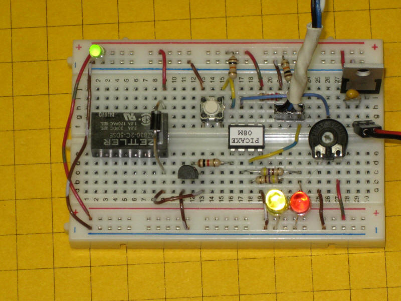 This photo shows the prototype of the circuit constructed on a solderless breadboard like