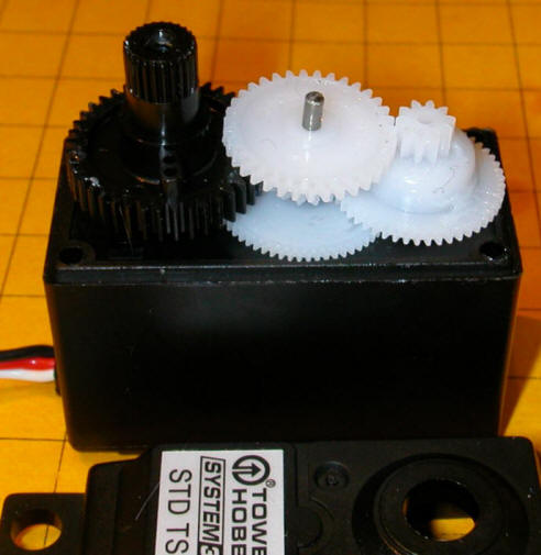 The position of the shaft is based on a digital signal. Most servos rotate through a 180 degree arc while delivering a good bit of torque. Three wires connect the servo to its controller. Two of the wires connect to a source of DC power, normally 5 to 6 volts. The other wire to the servo receives pulses from the controller that tell the servo where to position its shaft. In the photo below the red wire goes to the positive terminal of the power supply, the black wire goes to the negative and the white receives the positioning pulses.