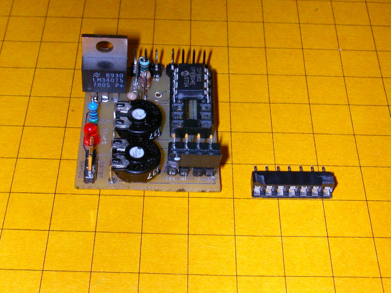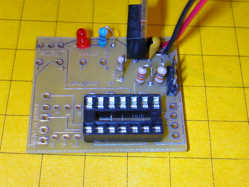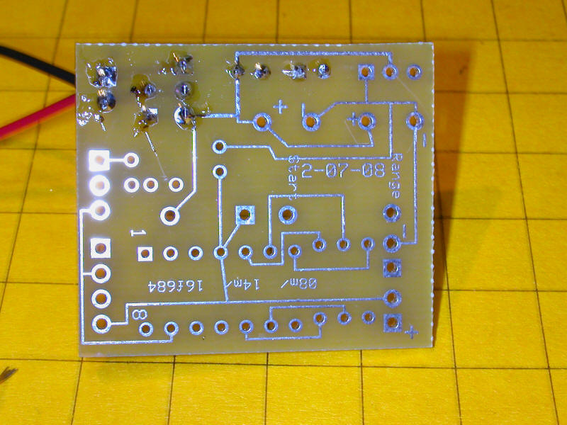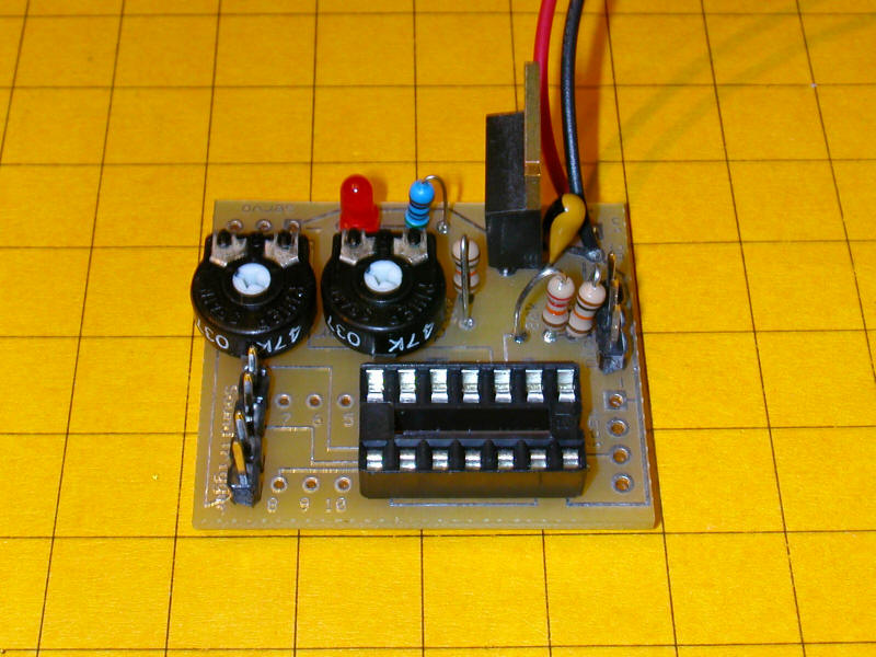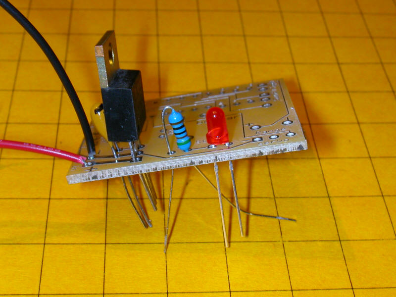 After soldering apply power (8-12 volts DC) to the red and black wires - the red LED should light. If it does not check for proper parts placement and shorts.