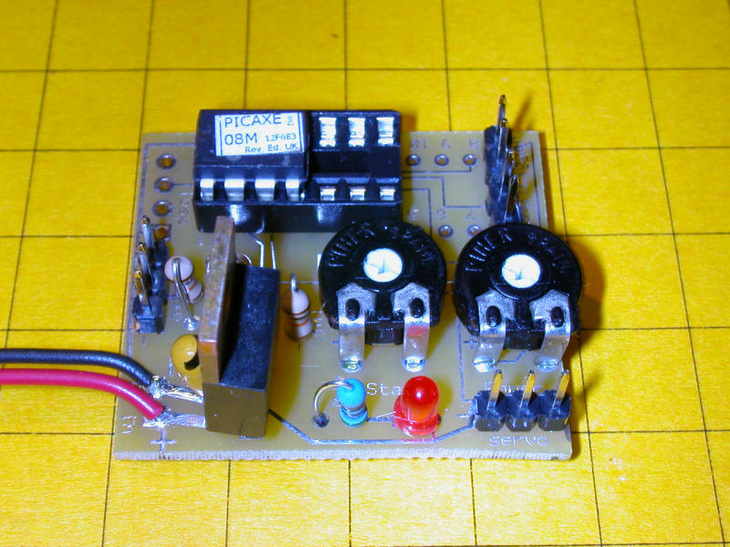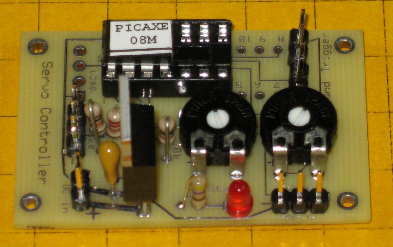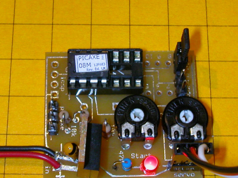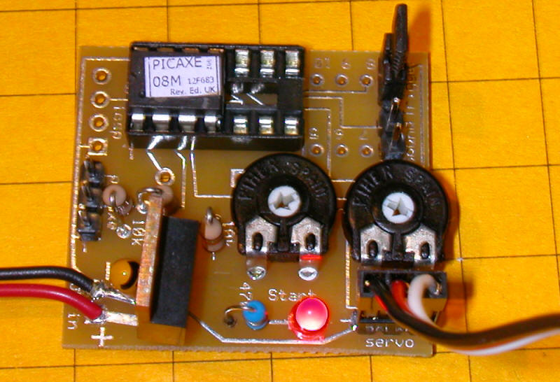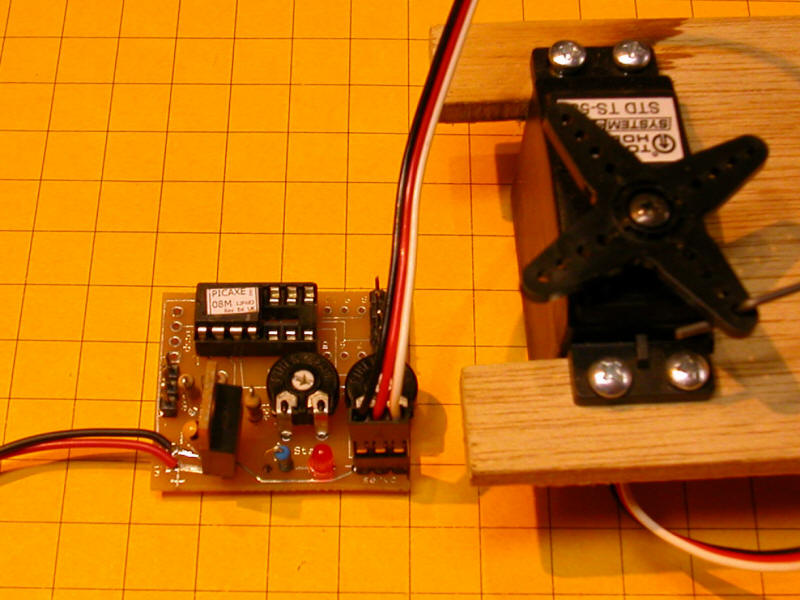 Modifications Some users of the servo board have requested software modifications. Some variations on the original program are shown below with their characteristics. Original program. One button push starts a complete cycle of servo motion from one extreme to the other and back to the original position with a 1.5 second pause between.