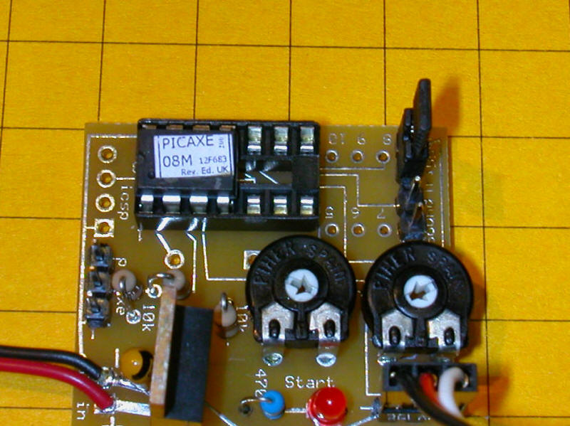 sensor is crossed the crossing arms raise and the flashing stops. start0: #PICAXE 14M2 ;Define Outputs use portB pins SYMBOL Light1 = b.1 'pin 12 SYMBOL Light2 = b.2 'pin 11 SYMBOL Light3 = b.3 'pin 10 SYMBOL Gong = b.4 'pin 9 SYMBOL boom1 = b.5 'pin 8