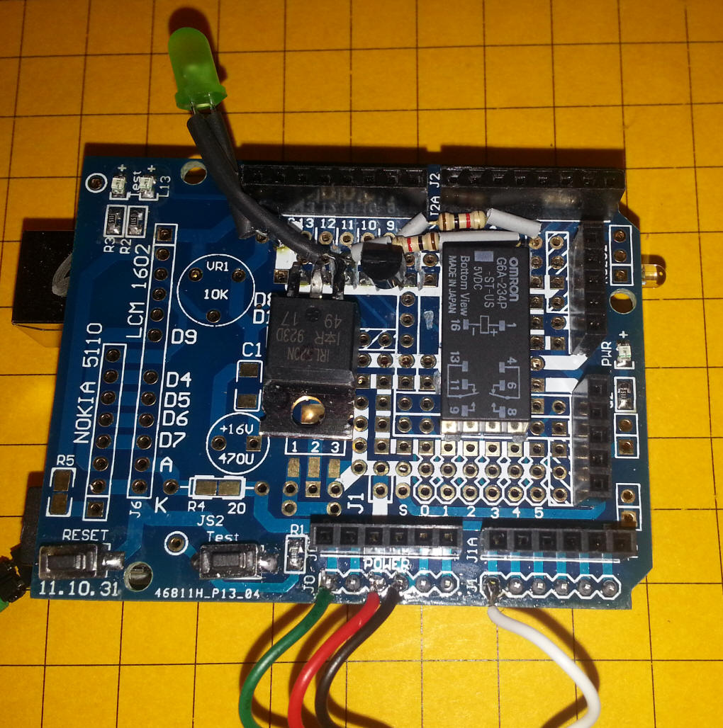 The prototype board is shown with the relay,