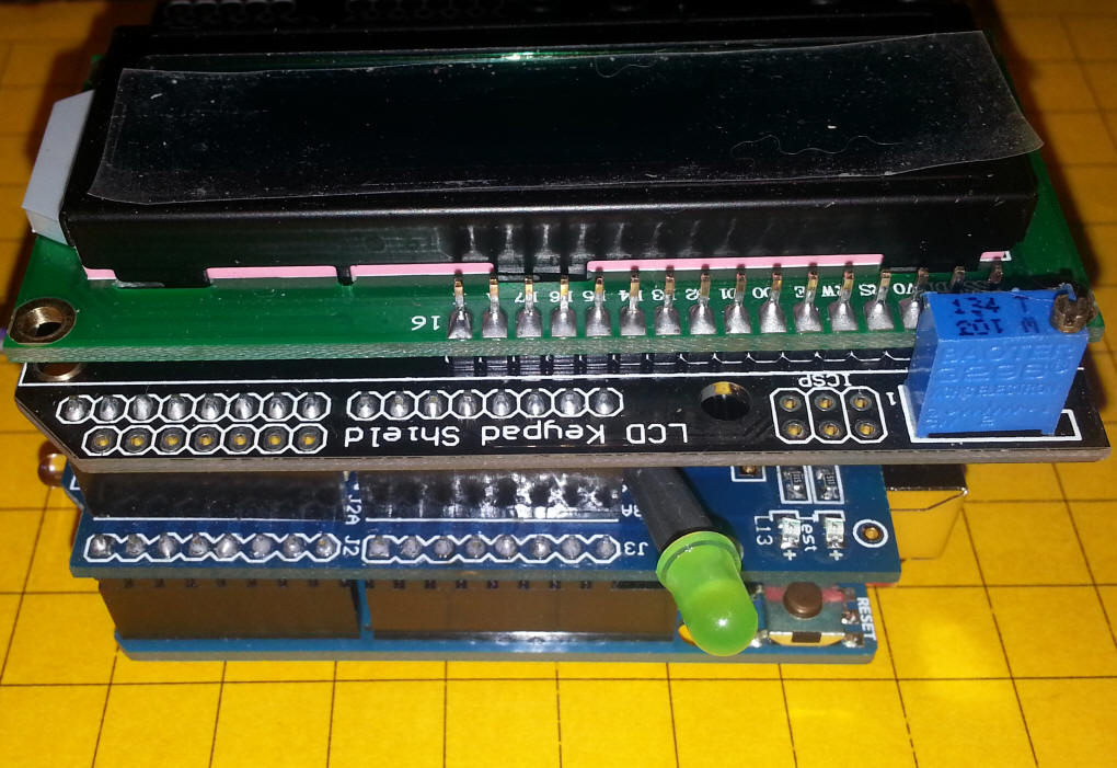 LCD Keypad Shield My first test was with a readily available 2 line LCD display with a 6 button keypad. I purchased it from BangGood.com - item # SKU083549