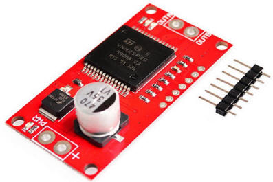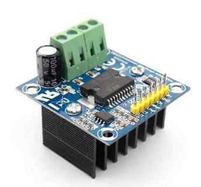 Schematic The schematic shows the Arduino Pro Mini along with three different H-Bridge units. VNH2SP30 - 16 volts at 30 amps - from eBay or Amazon - this device works very well but is limited to 16 volts. It is ideal for smaller scales but 16 volts may be too low for large scale use. Its pins include a single PWM pin that is sent an analog PWM signal. Pins 5 and 6 on the Arduino connect to ina and inb on the h-bridge. When ina is high and the other low the output spins the motor in one direction. When ina is low and the other high the motor spins in the other direction. Arduino pin 7 connects to en (Enable) - when this pin is high the power is on, when low it is off. Arduino pin a0 connects to the cs output on the h-bridge. It puts out a signal that can be used by the Arduino to measure power output. This pin is not yet implemented in the software.