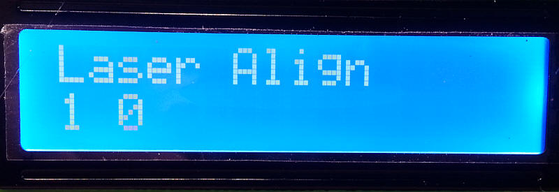 Adjust the lasers so that two 1's are shown. Once that is done the routine counts up to 100 before exiting to the normal program. Here the two lasers are properly adjusted and the blurry number in the upper right (shows 59) is rapidly counting to 100 at which point it will exit. If either beam is broken before this hits 100 the count will reset to zero.
