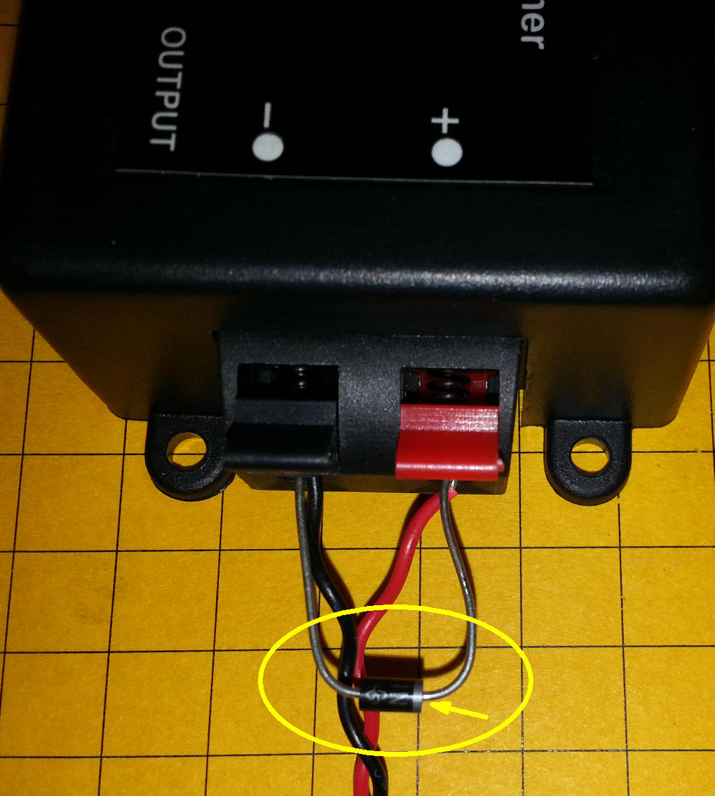 output terminal. In this photo I have inserted a 1 amp diode similar to