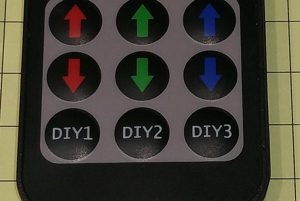 The unit pictured at the top of the page has three buttons labeled DIY1, DIY2 and DIY3. These buttons can be used to set the individual brightness level for each LED color in many discrete steps.