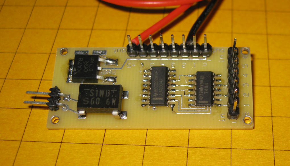 Although the smoke board works well I felt that a more compact board that would provide buffered connections between the Revolution receiver and whatever an operator might want to control would be a better solution for me.