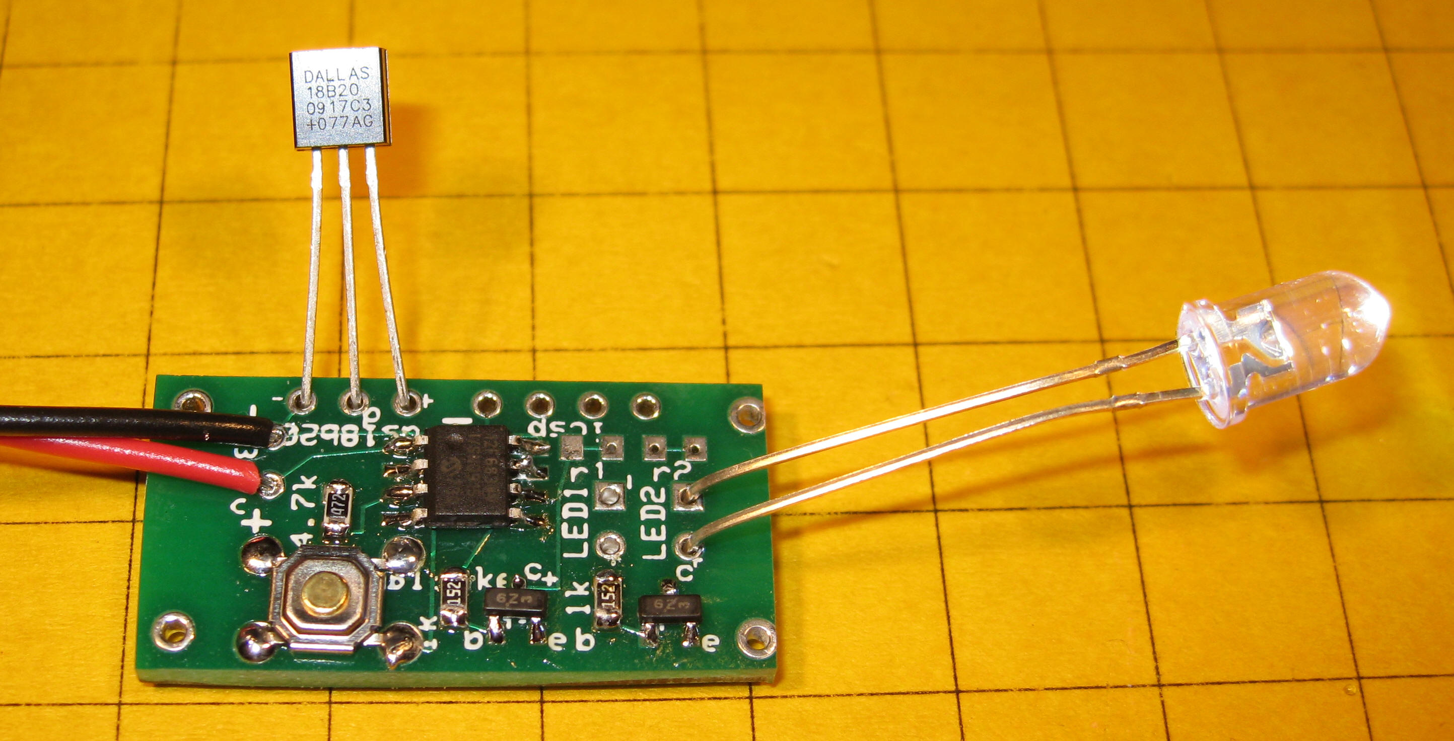 Temperature readings come from a Dallas Semiconductor DS18B20. This