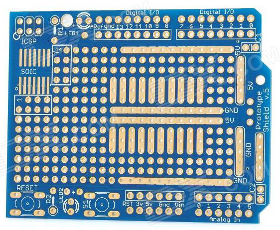 Parts Arduino shield board: http://www.dx.com/p/arduino-prototyping-shield-pcb-board-blue-138294#.VBi1gBbEf5A