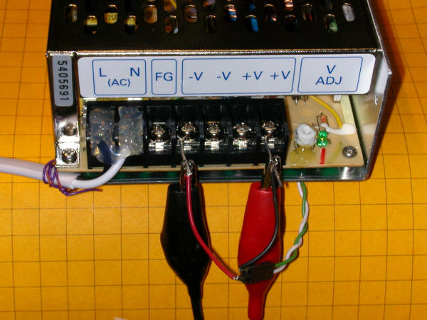 while the two "+V" terminals are positive. The voltage can be adjusted