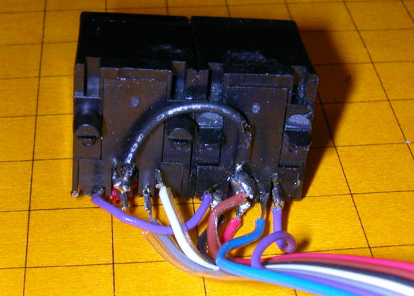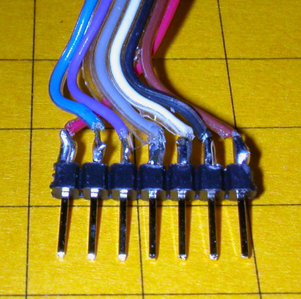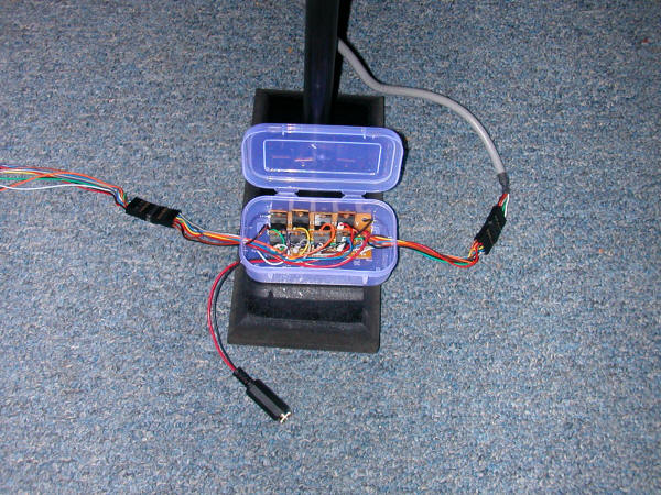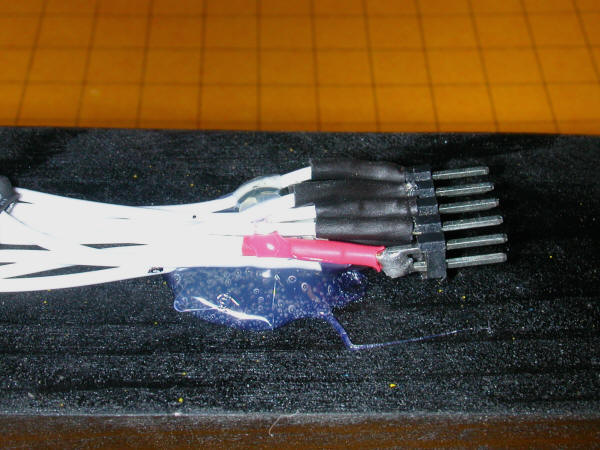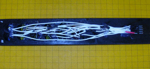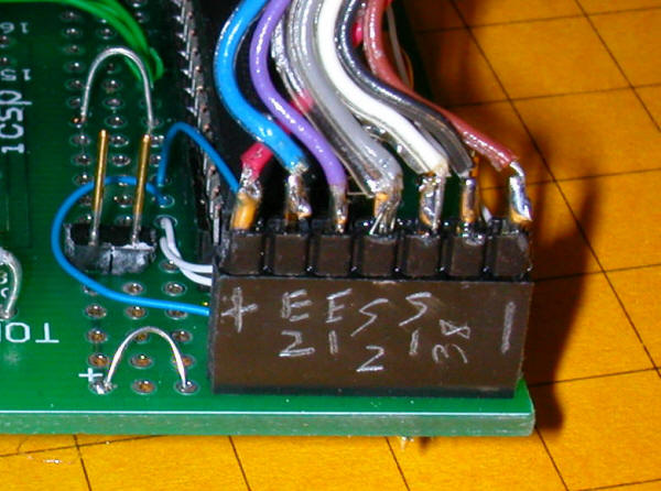 Here the connector for the sensors can be seen more clearly. The colored array of wires coming from around the chip connects to the Christmas Tree driver box.