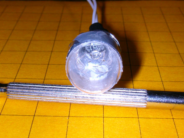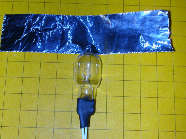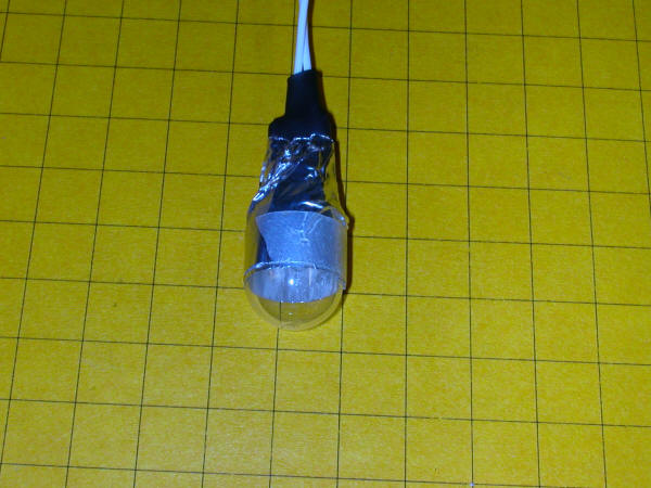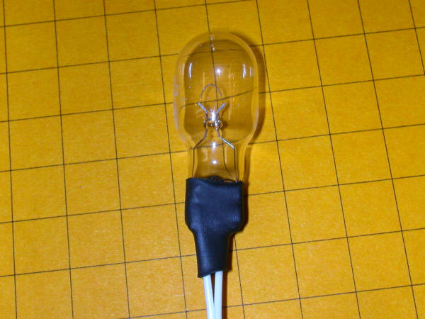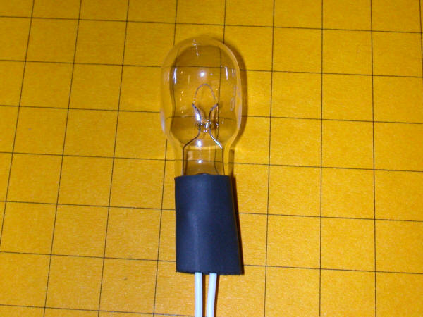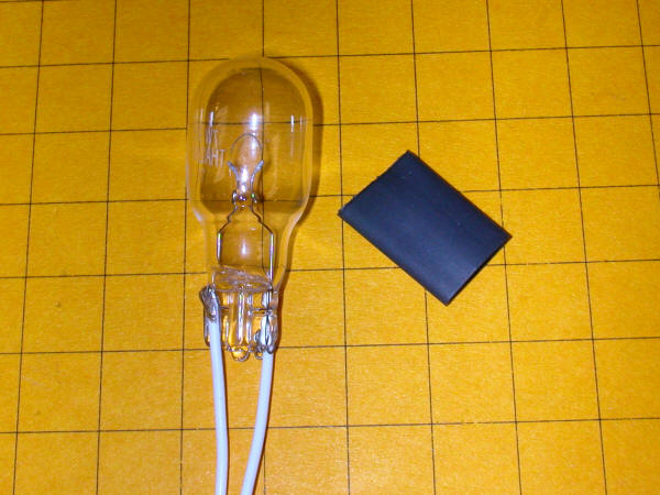 A piece of 1/4" inch heat shrink tubing is slid over the end of the bulb and the connecting wires.
