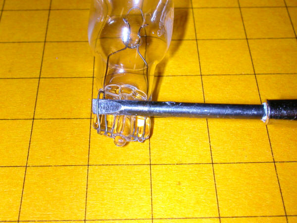 The bulb's contacts can be seen in the photo below. Solder will not adhere to the contacts. In order to connect the wires to the contacts use a small screwdriver to spread each contact to that the stripped end of the wire can fit between the loop of wire.