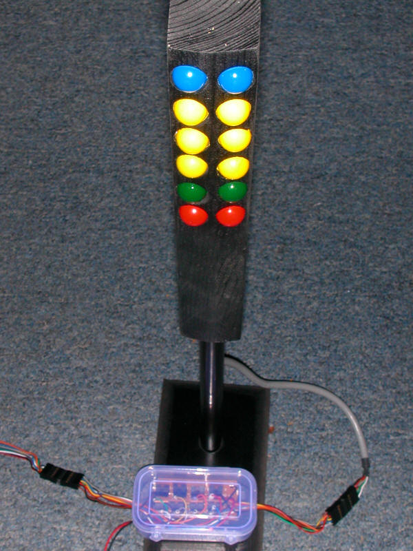 Prototype #1 Photos The Christmas Tree is made from 12 lights. Two blue at the top then three pairs of amber, a pair of green and two red at the bottom.