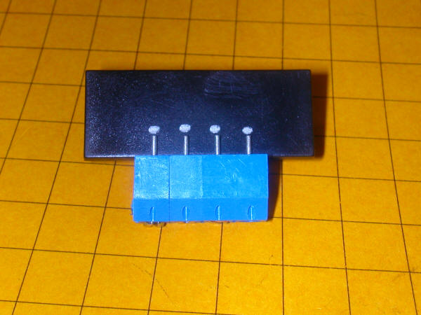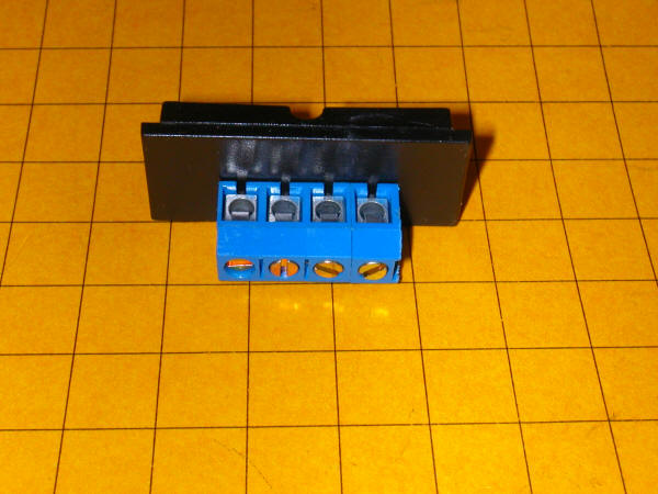 Here is a front view of the test board. It also clearly shows how to wire the signals. The cathode of one LED goes to terminal 1. The cathode from the other LED goes to terminal 2. Both of the LED's anodes go to terminal 3 along with the positive 12volt power lead. The negative power lead goes to terminal 4.