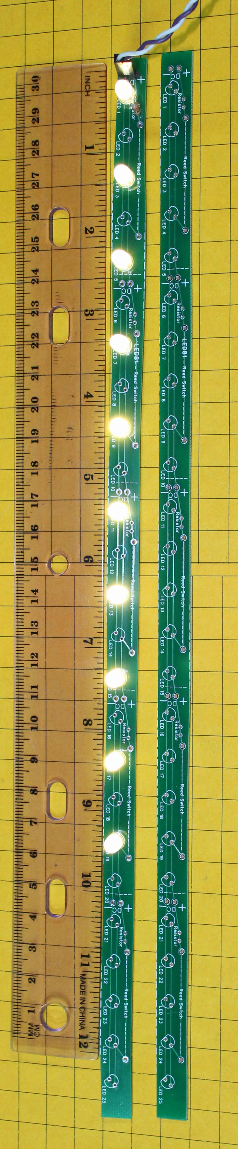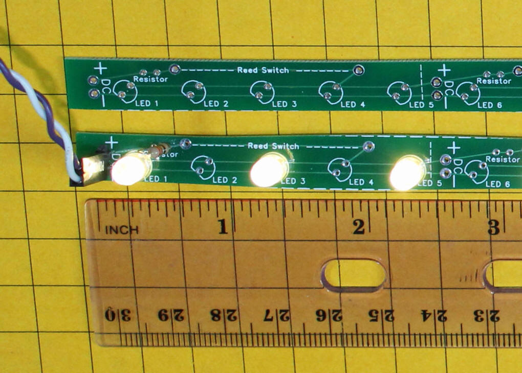 | Complete kit consisting of one 13" board, 12 warm white LEDs, reed switch, magnet, resistor and battery case | $15.00 |