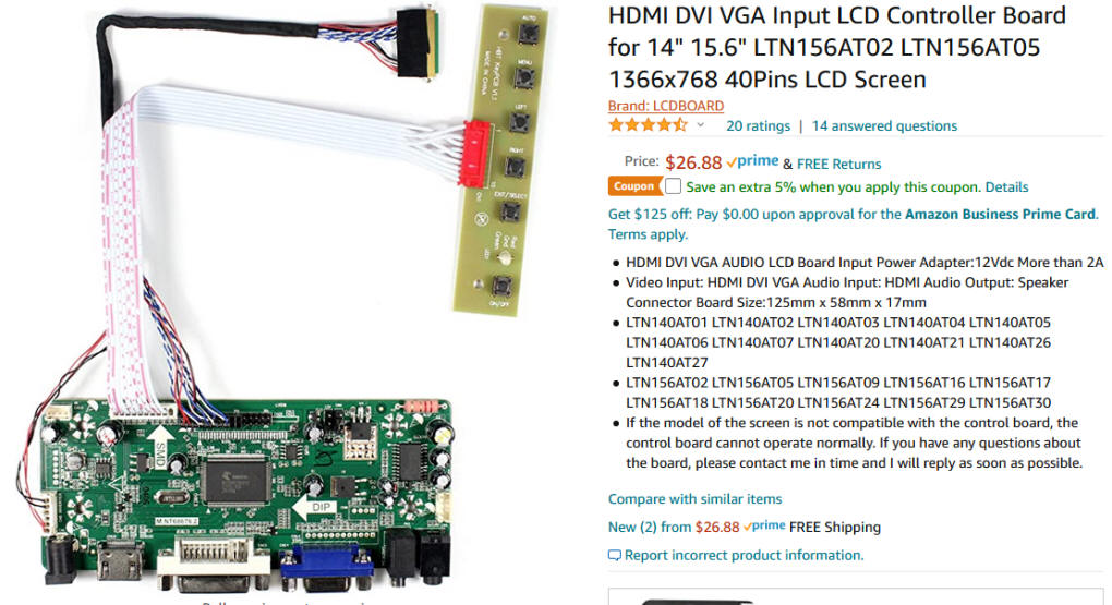 Identify the Screen Model # On the back of each screen you should find a sticker similar to what is found here. My screen's model # is LTN156AT05 I searched Amazon for LTN156AT05 controller board hdmi