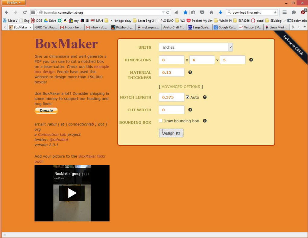 rather than built up with a 3D printer. With this goal in mind I explored the assortment of 40 watt CO2 laser engravers / cutters that are available. I settled on one that I found on eBay. It is inexpensive (less than $400 shipped) and should do what I need. Technical details from the above listing are here: Tech Specs for Laser Engraver What follows are my notes on setting up and using that machine. |