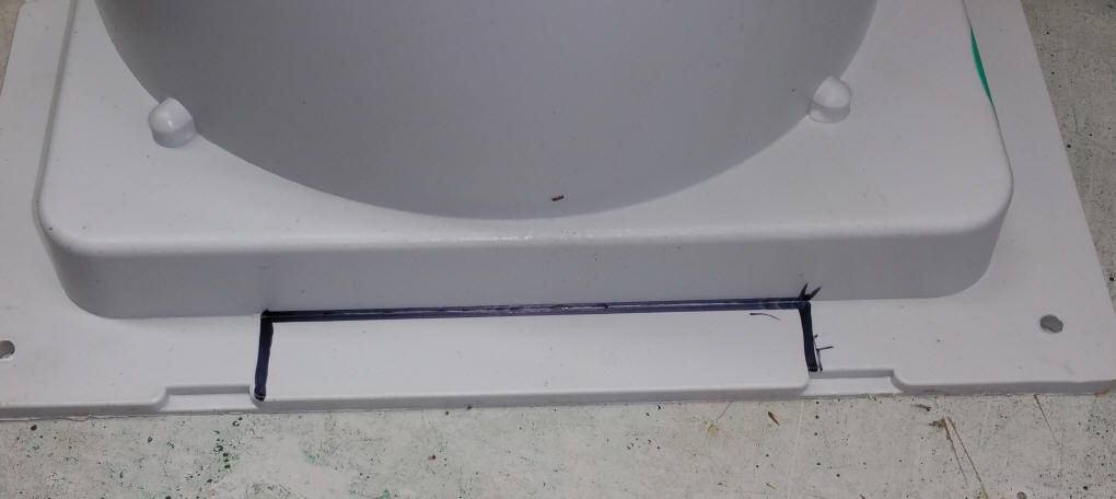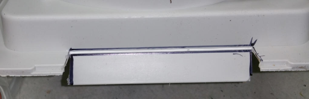 A Minor Modification The fan housing sat too high on the back of the engraver so I notched out a section of the frame as shown here: