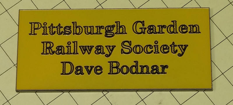 Quick Name Tag To make this quick & dirty name tag I painted one side of a piece of acrylic one color (grey on top) and paint the other in a contrasting color (I used black on the back). I engraved the top and the back color came through. I haven't tried this with a dark color on the front and a light color on the back but it should work, too.
