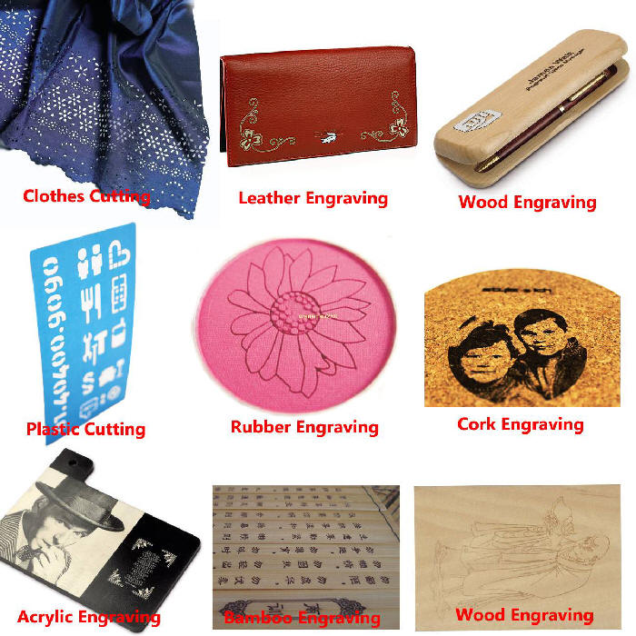 This machine is suitable to seal engraving, advertisement, art gift, garment, leather, toy, building upholster, computerized embroidery, packing and printing, paper product, garments sampling, large width tailoring, shoemaking, furniture, industry, craftwork, nameplates decorations, woodcut and other industries.