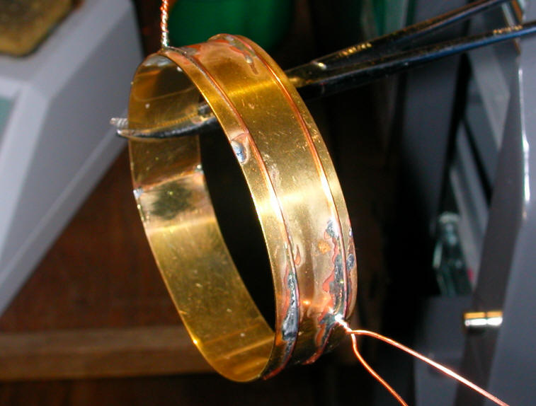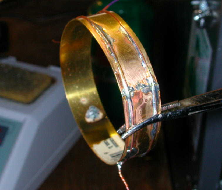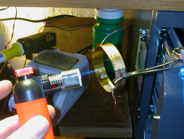 A small butane torch was used to solder the joint that makes the ring. It was held in place by two wires wrapped around its circumference.