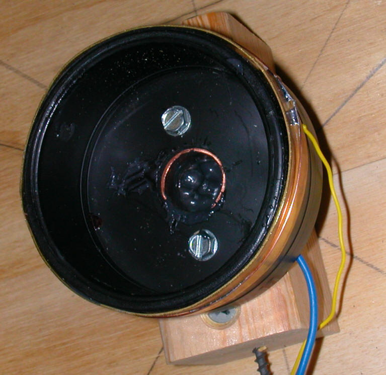 The outer contacts soldered to the ring on the white end cap. The ring has been moved to the bottom of the cap so that the contacts can rub against the ring on the black cap.