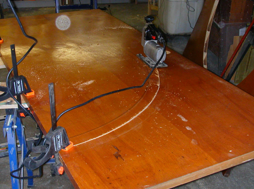 Arcs were drawn on each for a rough cut - these were several inches larger than what was planned for the finished platform.