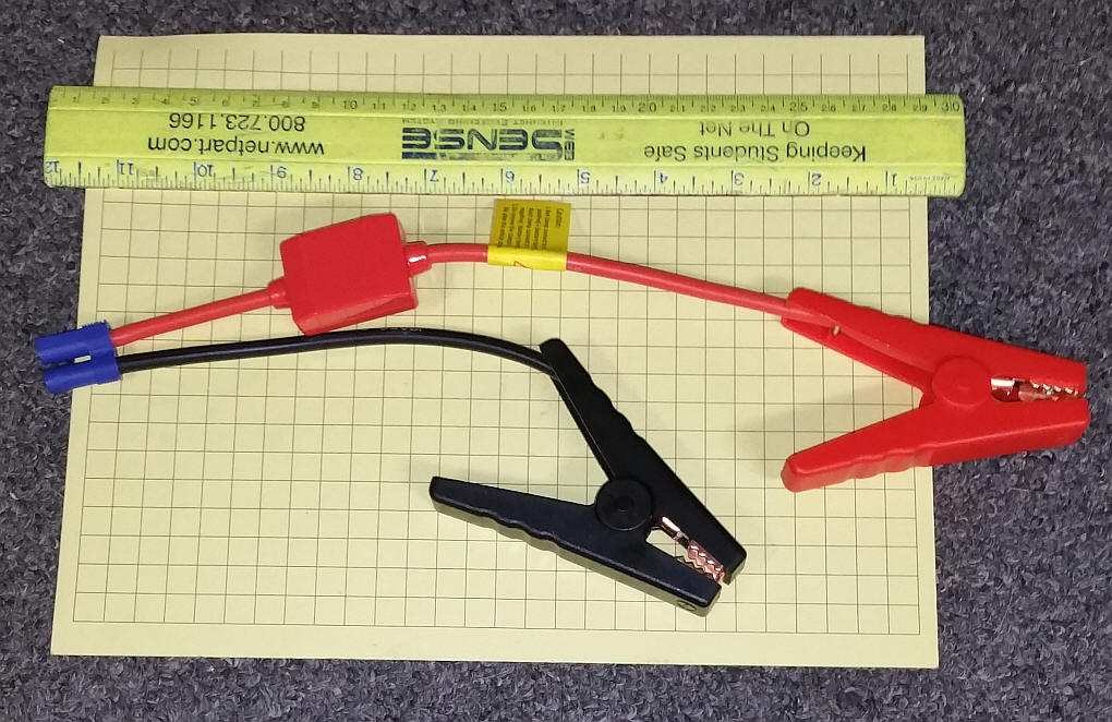The car battery cables are a bit over 12" long. At first I thought that the large red box was a fuse...
