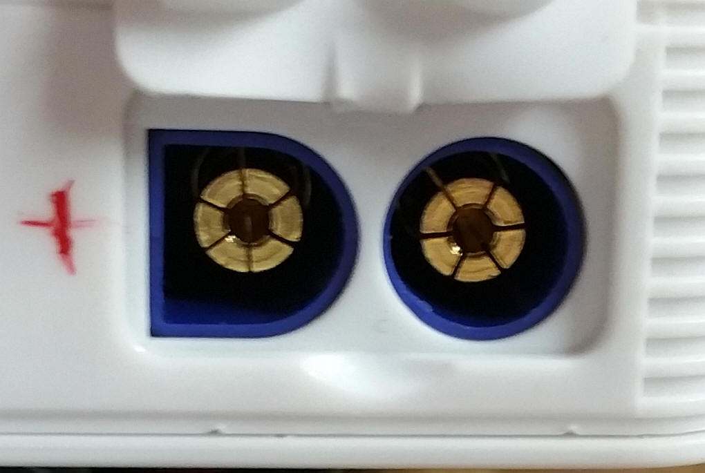 Here is a close-up of the car starting port - the red "+" marks the positive terminal