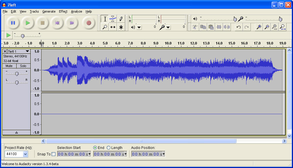 The file we are working with is a monaural (mono) audio file. If you want to make it stereo, so that we can modify how it will play through both of the Sound Controller's speakers follow these steps: