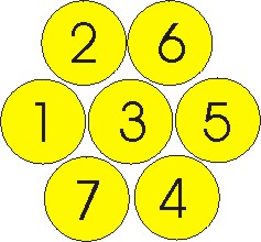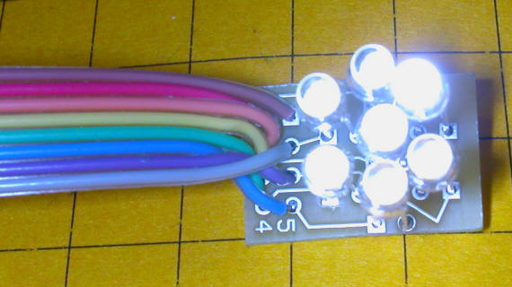 As mentioned above the 7 LED array, shown below, has a default pattern that lights the LEDs in this pattern: