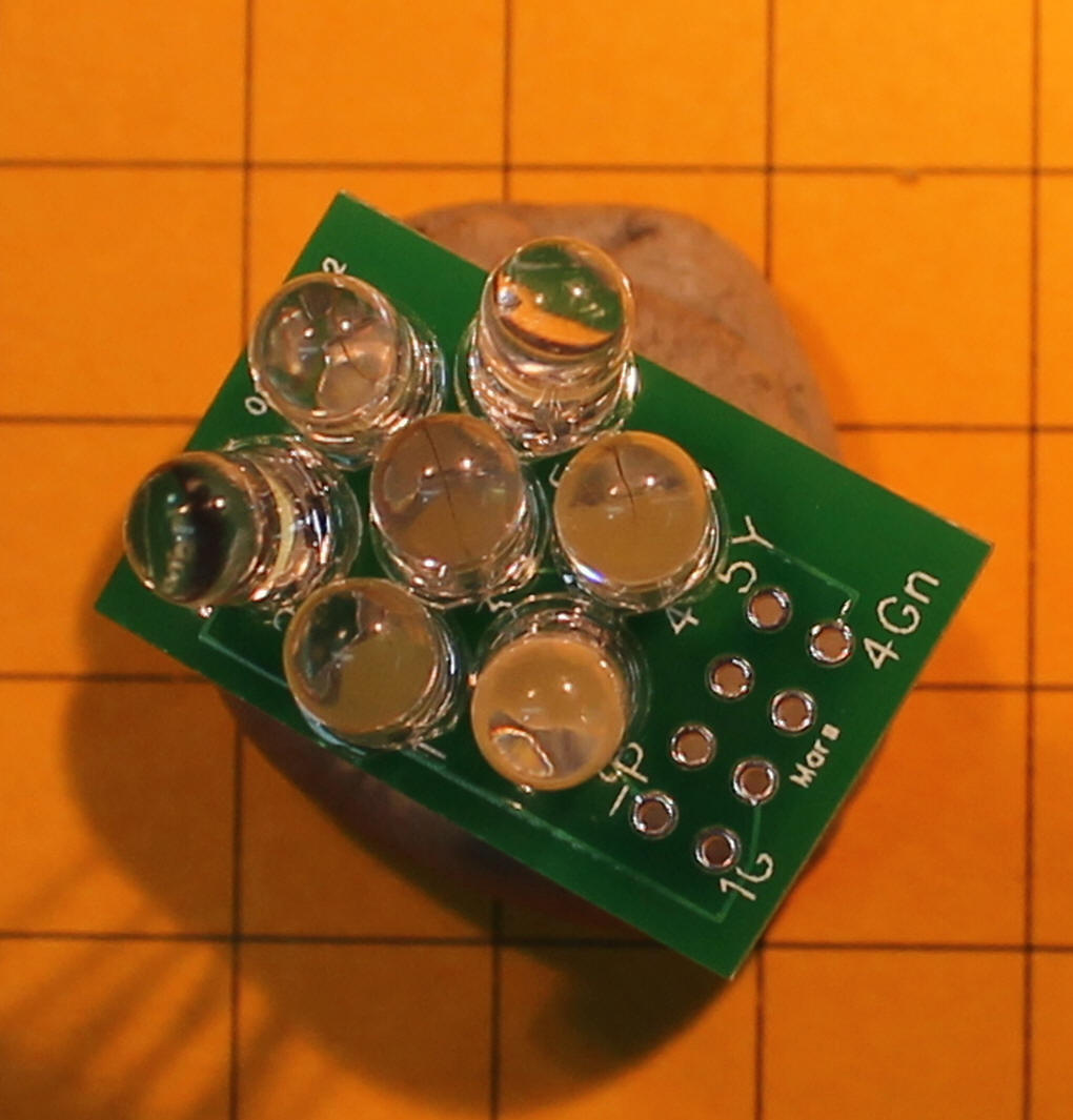 I showed both of these sample Mars lights during my presentation at the National Garden Railway Convention in Santa Clara in July. When viewed from a distance of 10 or 15 feet members of the audience didn't even realize that there were two different LED arrays, one using 7 LEDs and the other just 4. Most thought that they were the same.